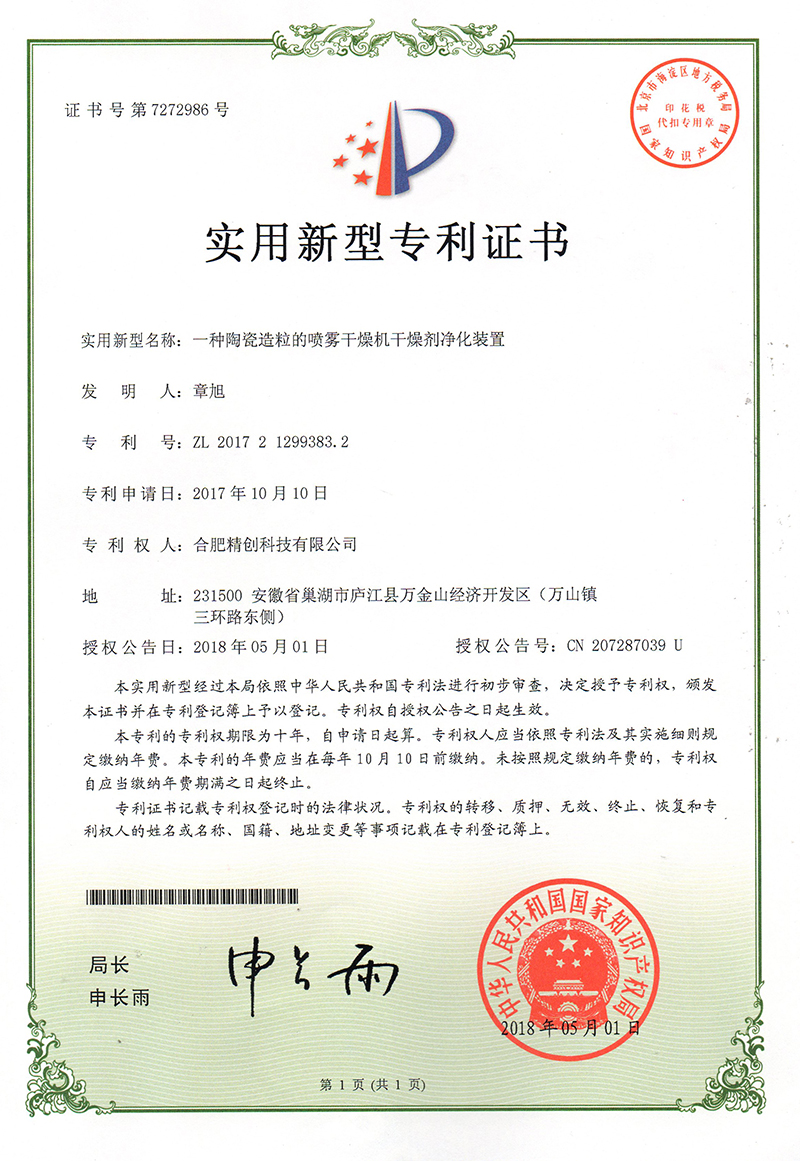 (2018實用新型)一種陶瓷造粒的噴霧干燥機(jī)干燥劑凈化裝置